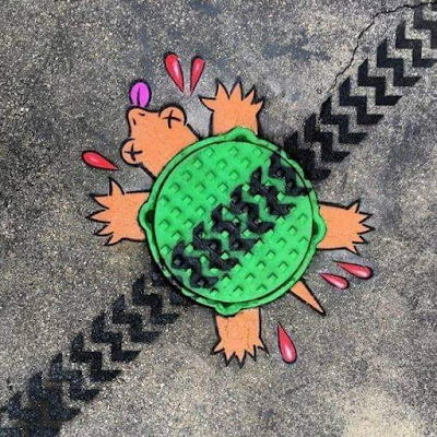 Look like a truck ran over a turtle on a street !!. Awesome funny art created by artist.