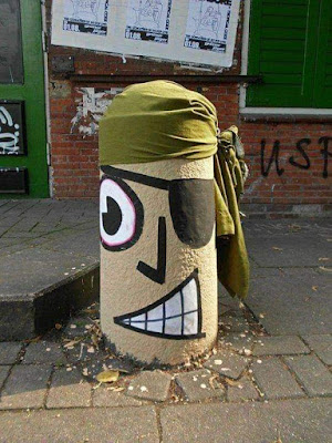 Artist created a pirates look like face over a small pole on the street. It’s really an attraction for people passing through road.