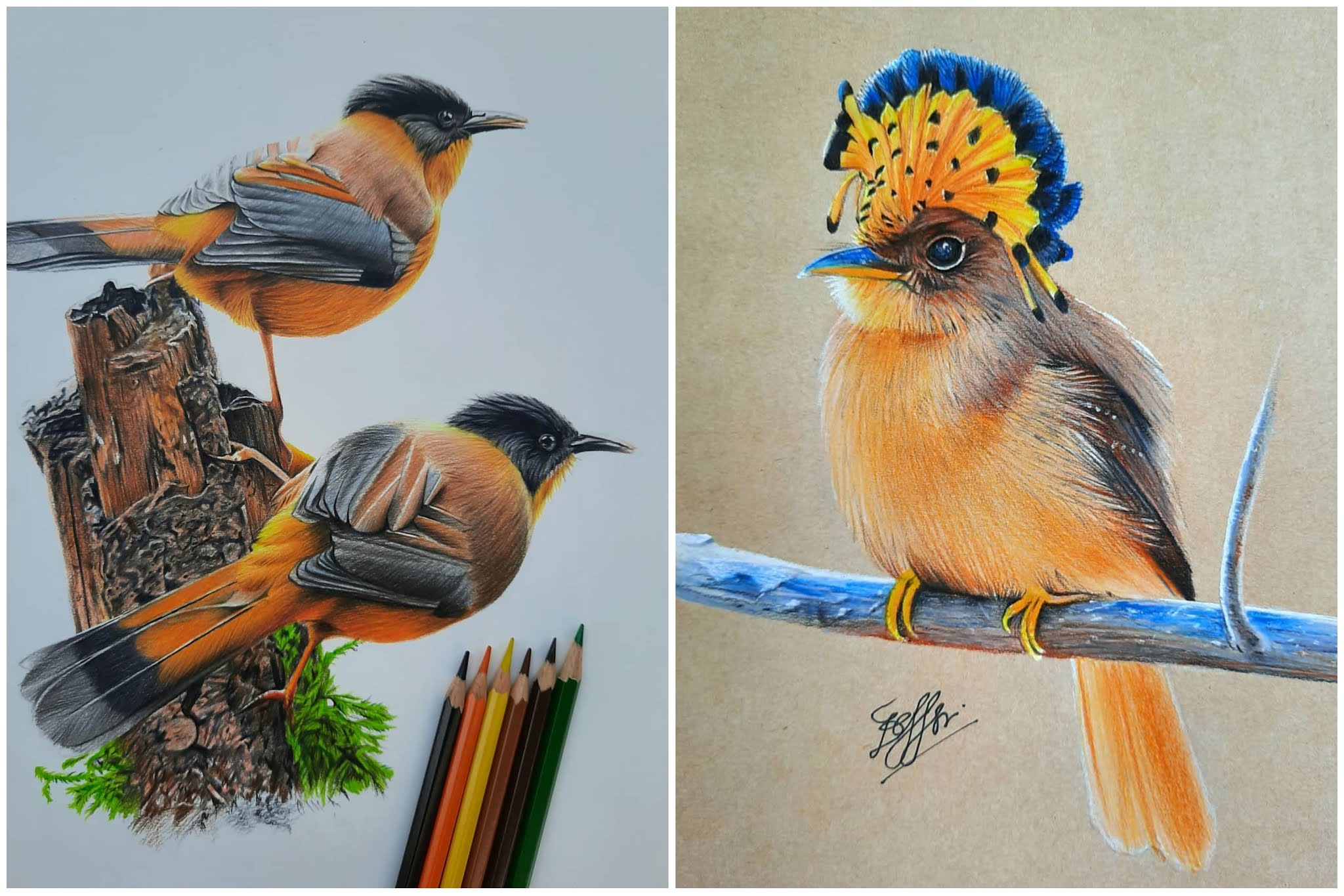 Colored Pencil Drawings of Birds by A Great Artist